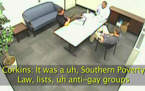 “It was, uh, Southern Poverty Law,” he answered. “It lists, uh, anti-gay groups. I found them online.”