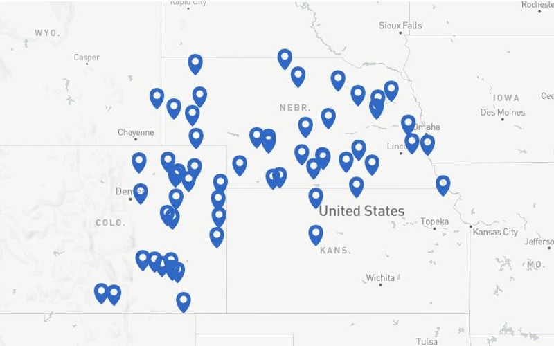 According to a publicly available image on the Viaero website (right), the cellular service provider has nearly 60 operational cameras in Colorado and Nebraska alone. (Click on image for larger version)