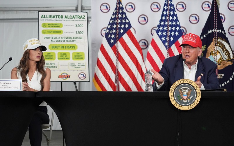 On Tuesday, President Donald Trump, Department of Homeland Security Secretary Kristi Noem and other state and federal officials toured the facility, which was built by Florida Gov. Ron DeSantis' administration in a matter of days and is expected to receive its first detainees Wednesday.