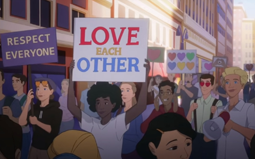 But Morris remembers the Biden-era recruiting ads featuring a girl with two moms (pictured right) and soldiers dressed up in drag.